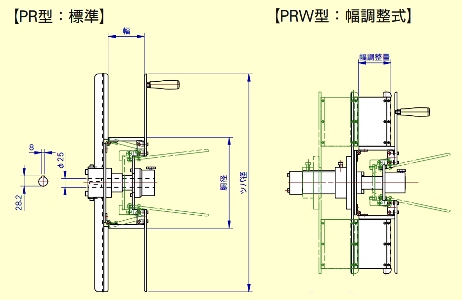 電線を束に巻き取るための手動巻取機。PR型巻取パラソルと併用します。巻取径などは、PR型巻取パラソルの寸法より選択可能です。